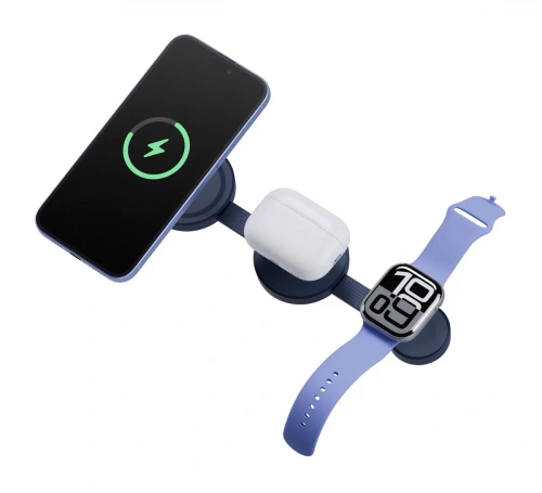 Беспроводное зарядное устройство EnergEA MagTrio 2, 3in1 magnetic wireless foldable charger Qi2 25W, Синий (MAG-TRIO2-BLU)
