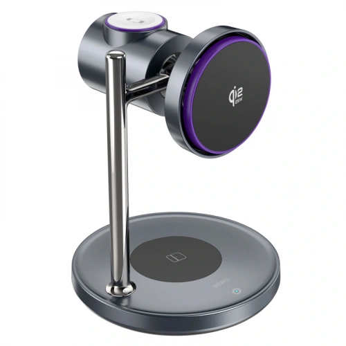Беспроводная зарядная станция Wiwu Qi2 3-в-1 с док-станцией Magic Cube с автоматическим вращением 25W, Grey (Wi-W041)