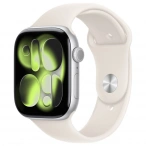 Apple Watch Series 11, 46 мм, алюминий цвета «Silver», спортивный ремешок "Starlight", M/L (MEWC4)