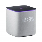 Корпус колонки, выполненный из ткани, не только стильно выглядит, но и обеспечивает приятные тактильные ощущения, защищает динамики и смягчает звук. Встроенный экран светится на текстильной поверхности.